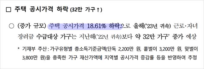 2024년에는 자녀장려금 자격 요건이 완화되었고, 재산 요건과 관련 있는 주택의 공시가격 하락으로 지원 대상자가 많이 늘 것이라는 국세청 발표가 있었습니다.