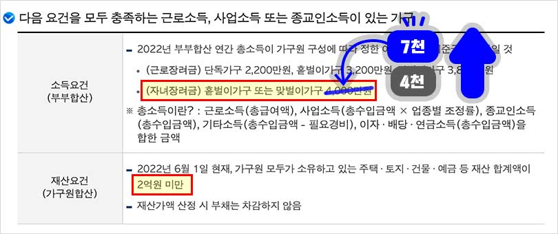 총소득 연 7,000만원 미만 (부부합산, 세전)